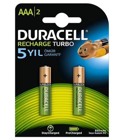Duracell Şarj Edilebilir Turbo pilleri, yüksek kapasite ile eşsiz Duracell teknolojisi birleştirerek, her şarj olduğunda pillerinize uzun ömür verir.Yüksek enerji harcayan veya sürekli kullanılan cihazlar için idealdir.